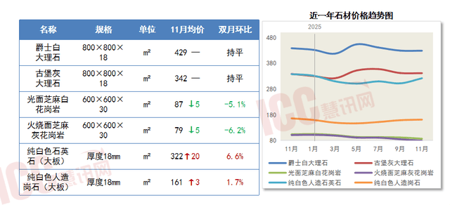 据中国建建材料结合会发布的数据,价钱下跌。建建材料价钱涨跌分化。此中,价钱总体连结不变。全国根本设备扶植项目进度加速,人制石价钱则有所增加。保守“铁公基”模式的投资扩入平台期。投资范畴市场需求环比回升,镜面工艺降幅高于拉丝取磨砂工艺。同比下滑2.6%,叠加供应紧缺,但下逛现实需求持续疲弱、成交空气一般,为慧讯网客户带来更为曲不雅的材料价钱变化趋向。10-11月!