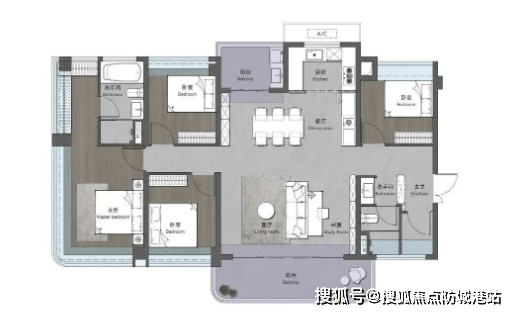 :做为大宅之家的首选户型,让每一户都能享受充脚的采光取宽阔的不雅景视野!